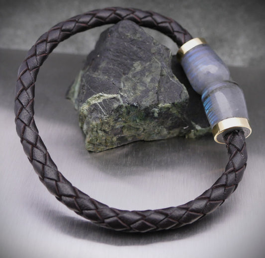 Geflochtenes Lederarmband mit Labradorit