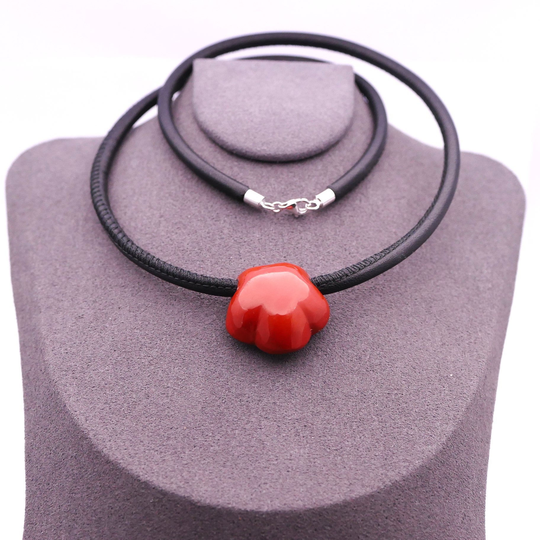 Leather necklace with a natural stone flower, personalized jewelry
