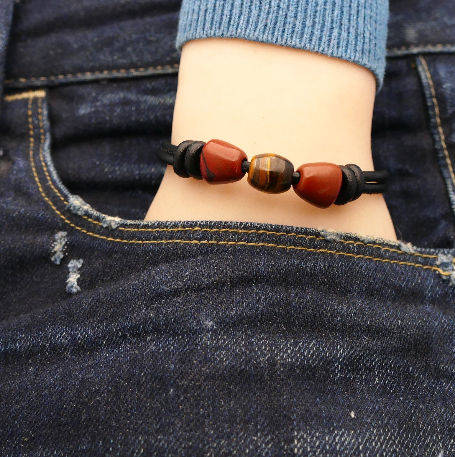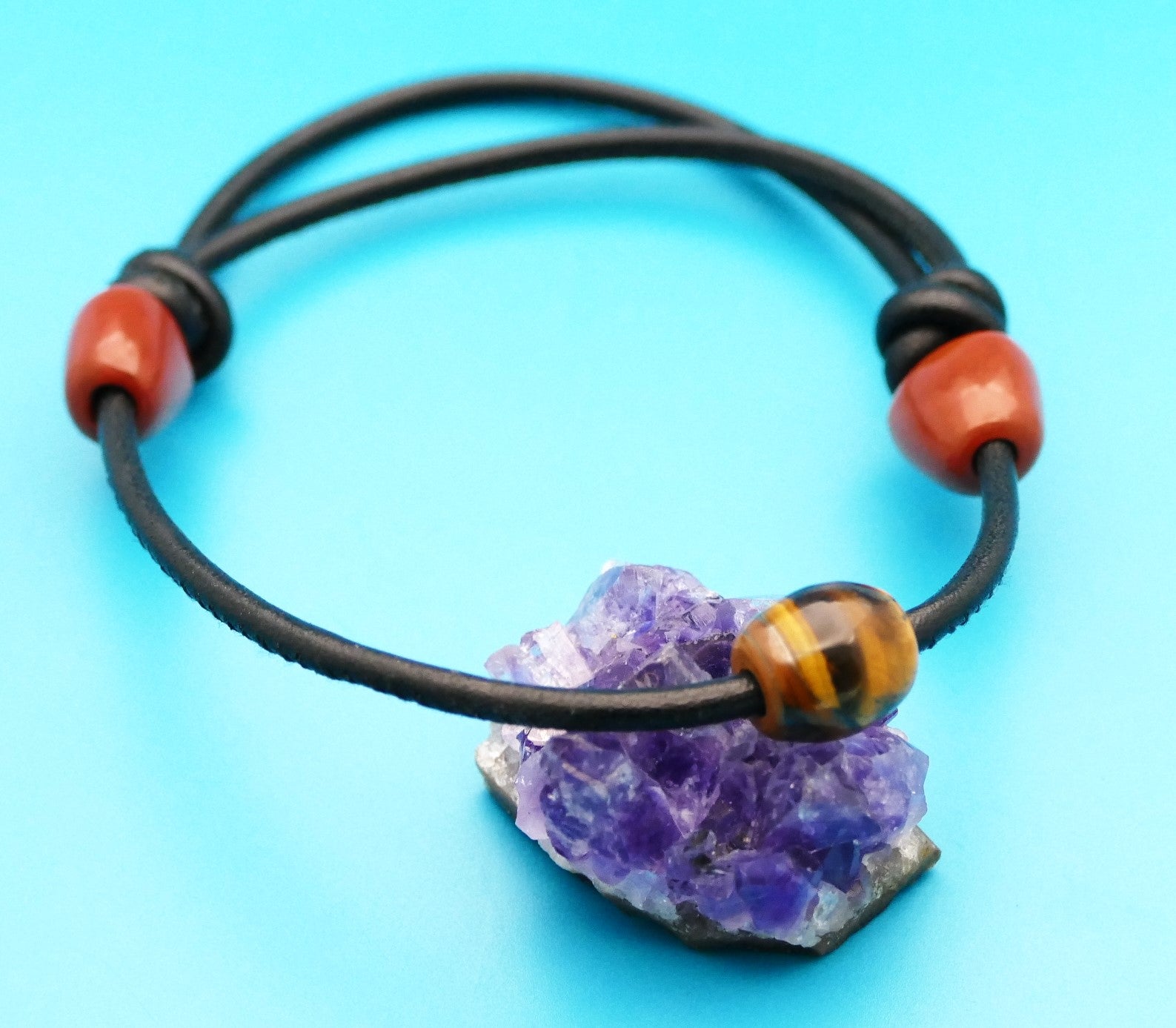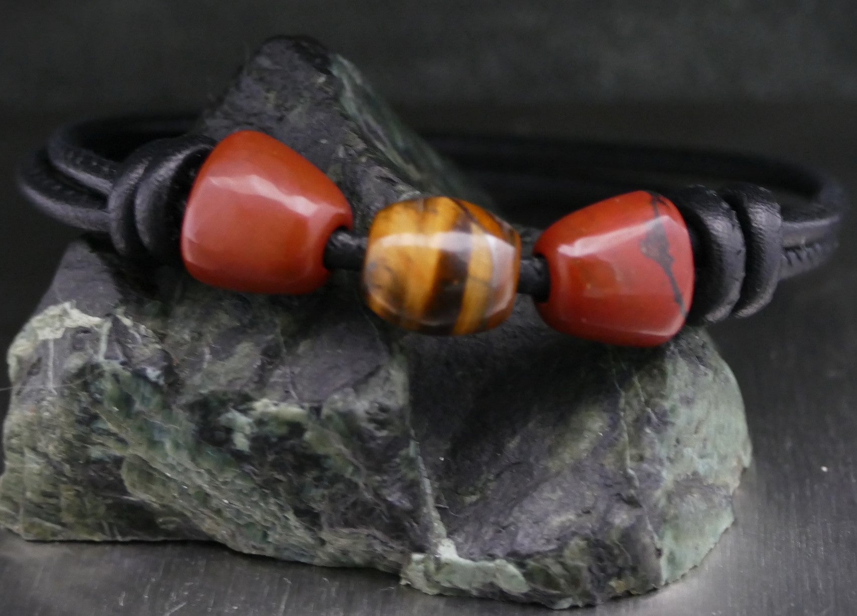 19 cm langes Armband aus 3 mm dickem Nappaleder mit einem Naturstein.
