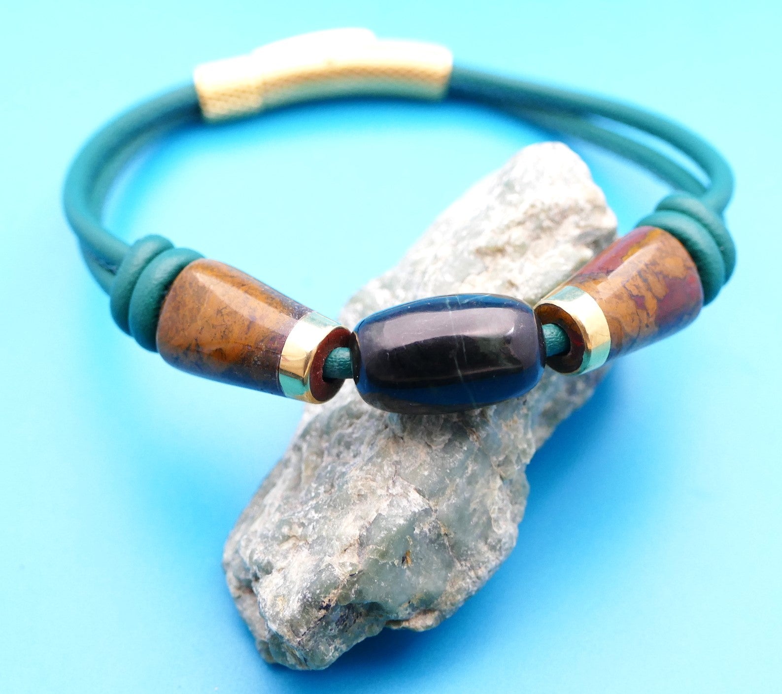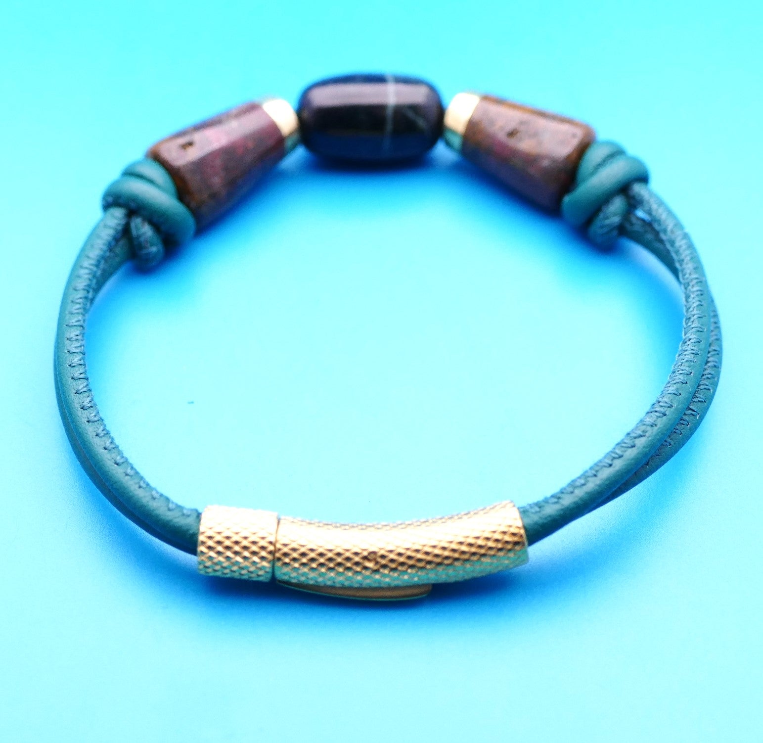 19 cm langes Armband aus 3 mm dickem Nappaleder mit einem Naturstein.