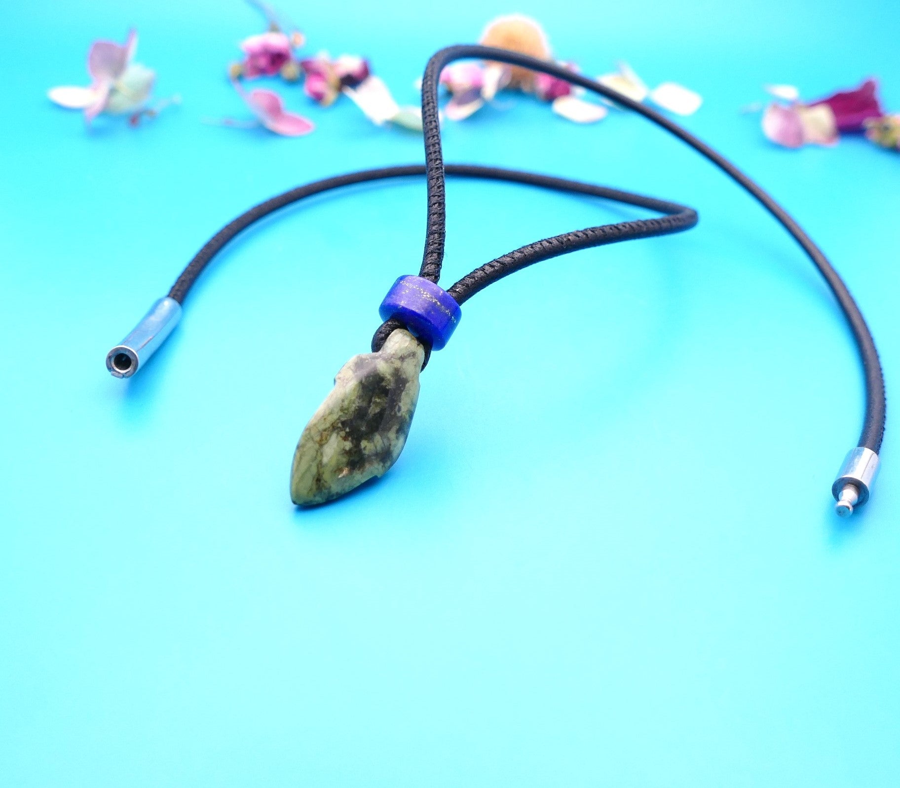 45 cm lange Halskette aus 3 mm dickem Ciur-Nappa mit Natursteinen.