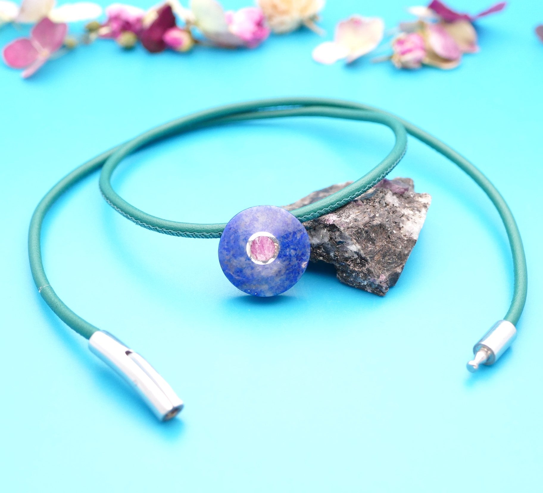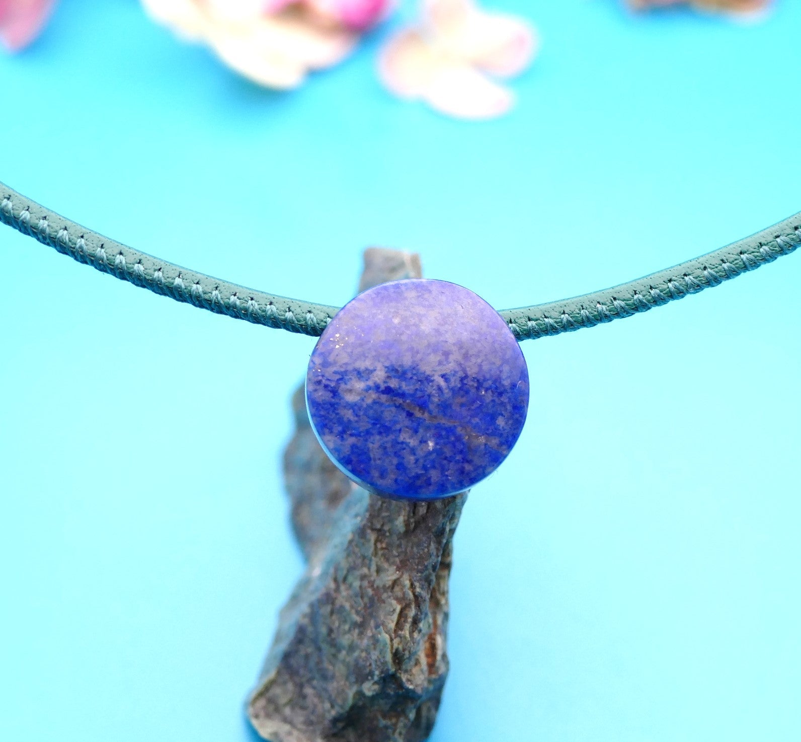 Lederhalskette mit einer Natursteinblume