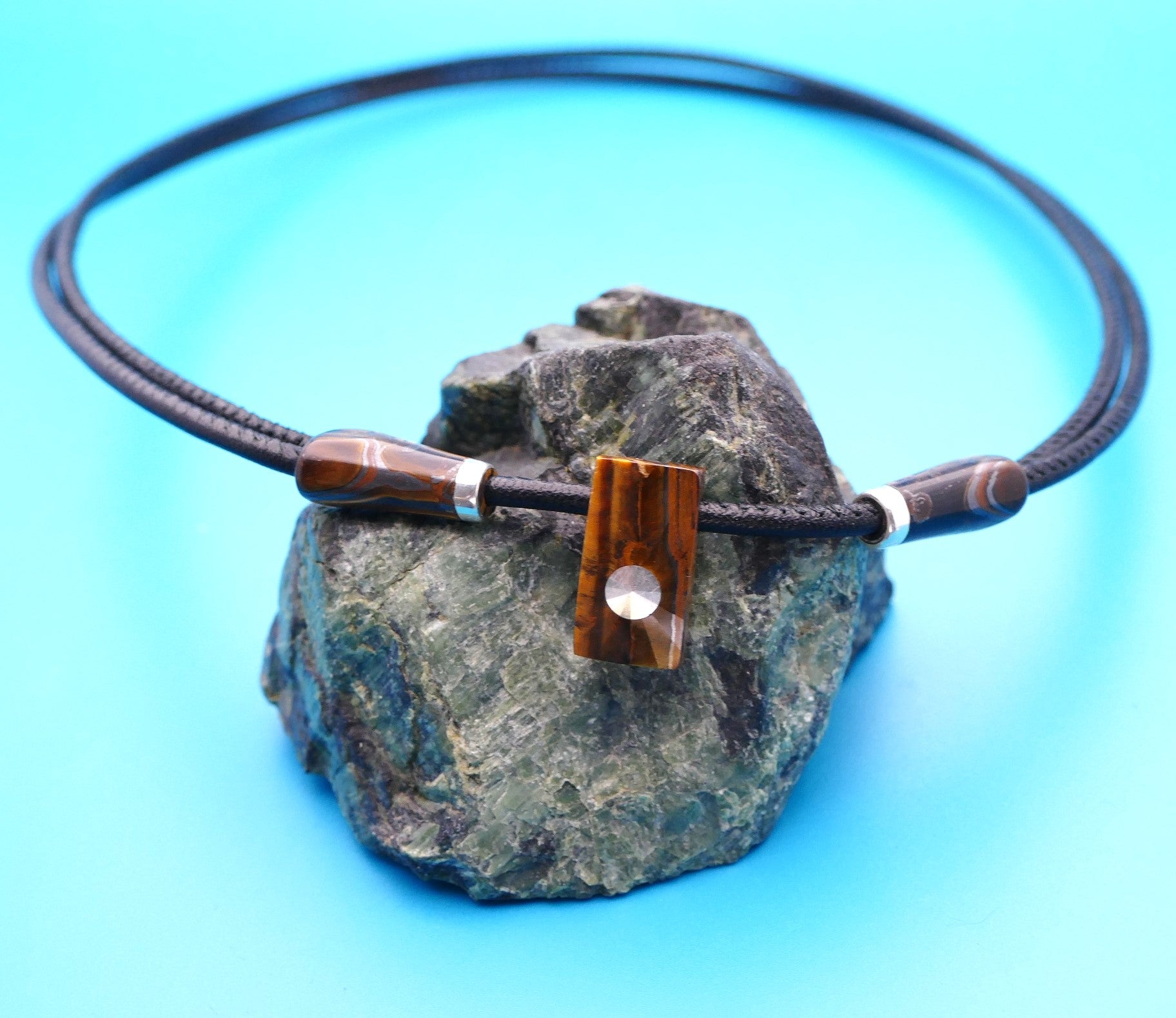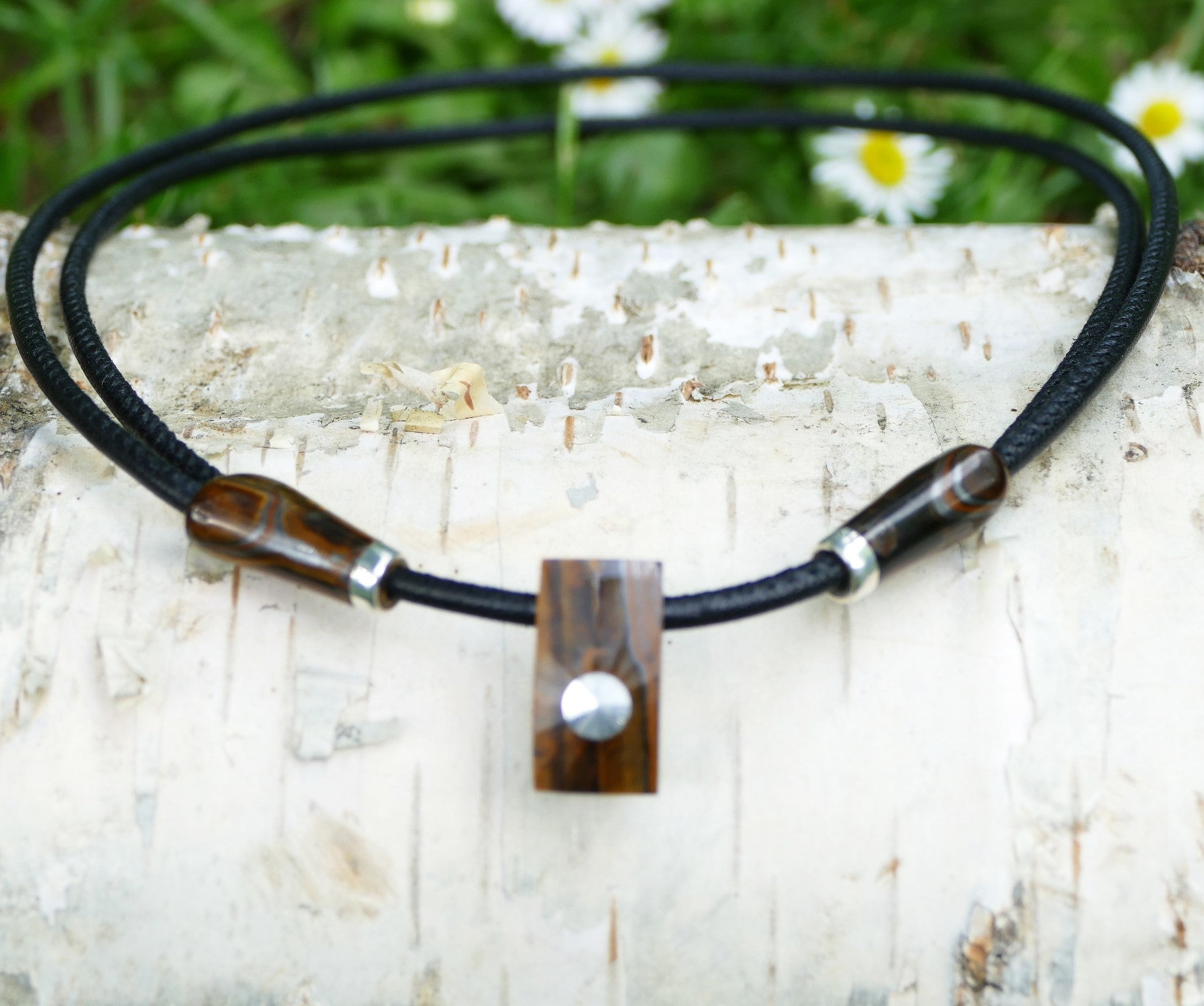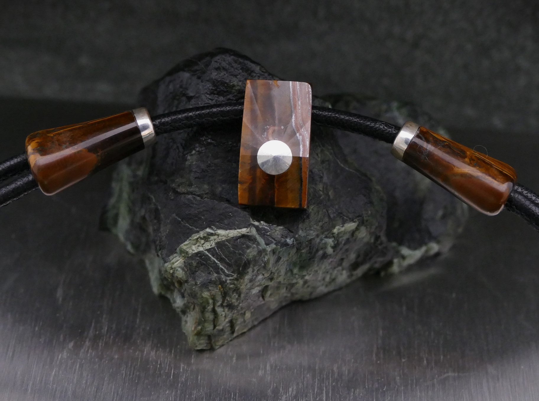 Verstellbare Halskette aus Nappaleder mit natürlichem Edelstein.