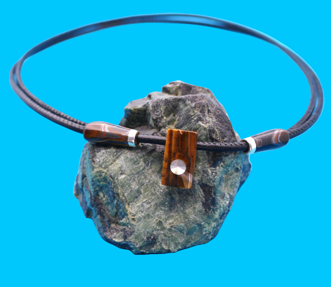 Edelstein: Tigerauge mit facettiertem 925er Silber in der Mitte (10x19mm)
