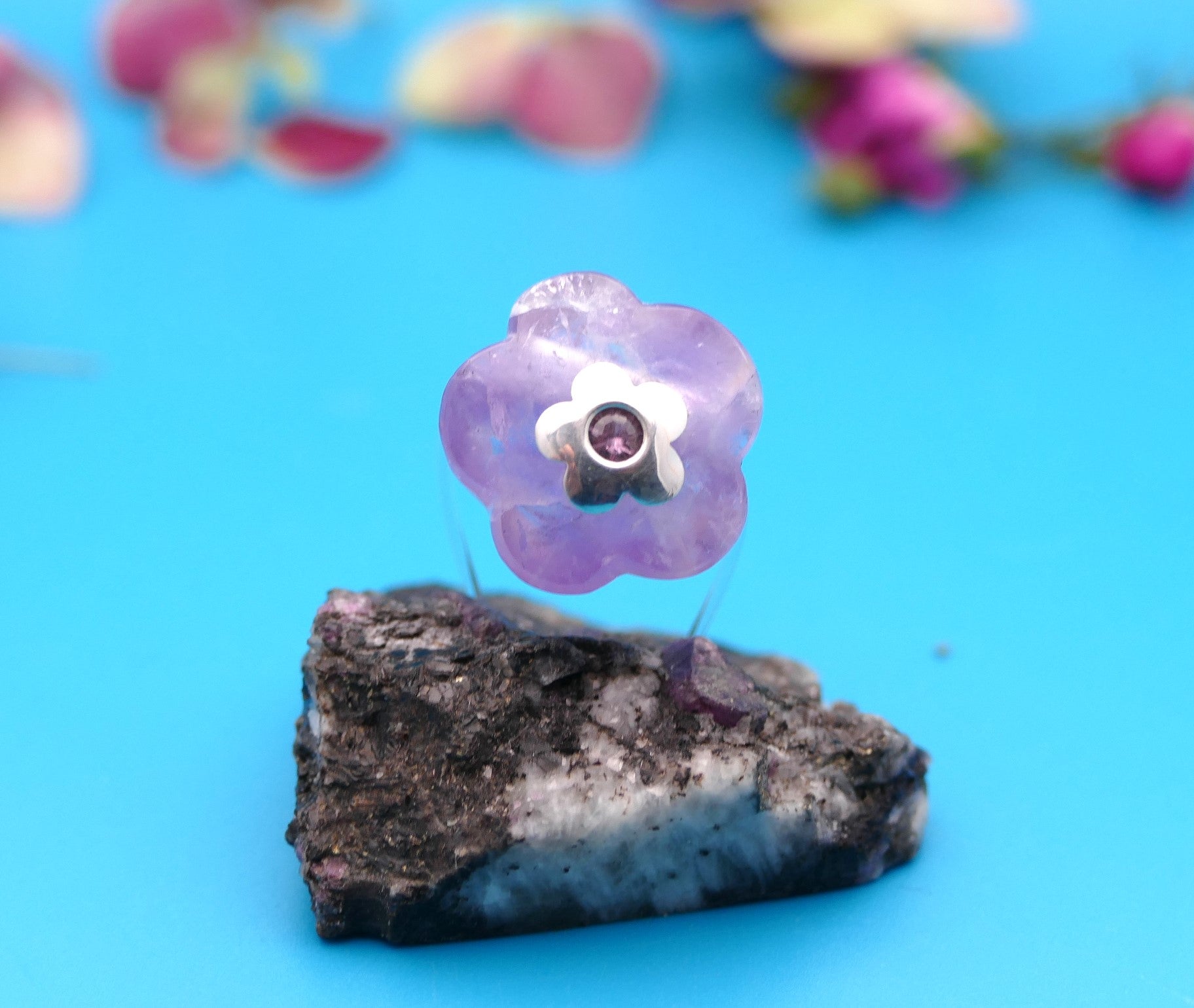 Stein in der Mitte: rosafarbener Saphir, 3 mm, AAA-Qualität.