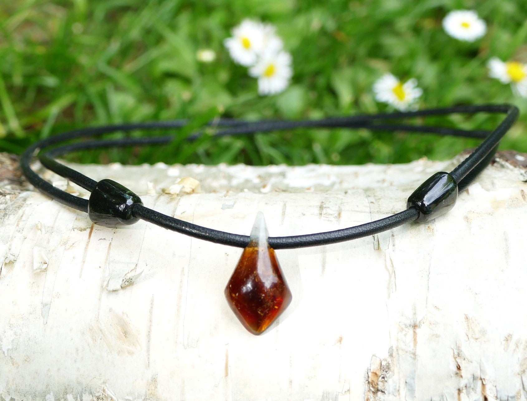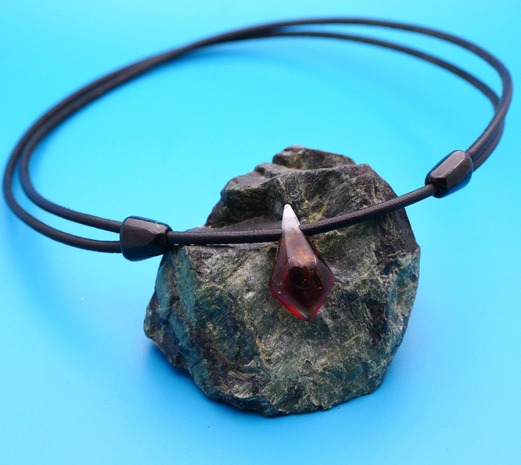 Verstellbare Halskette aus Nappaleder mit natürlichem Edelstein.
